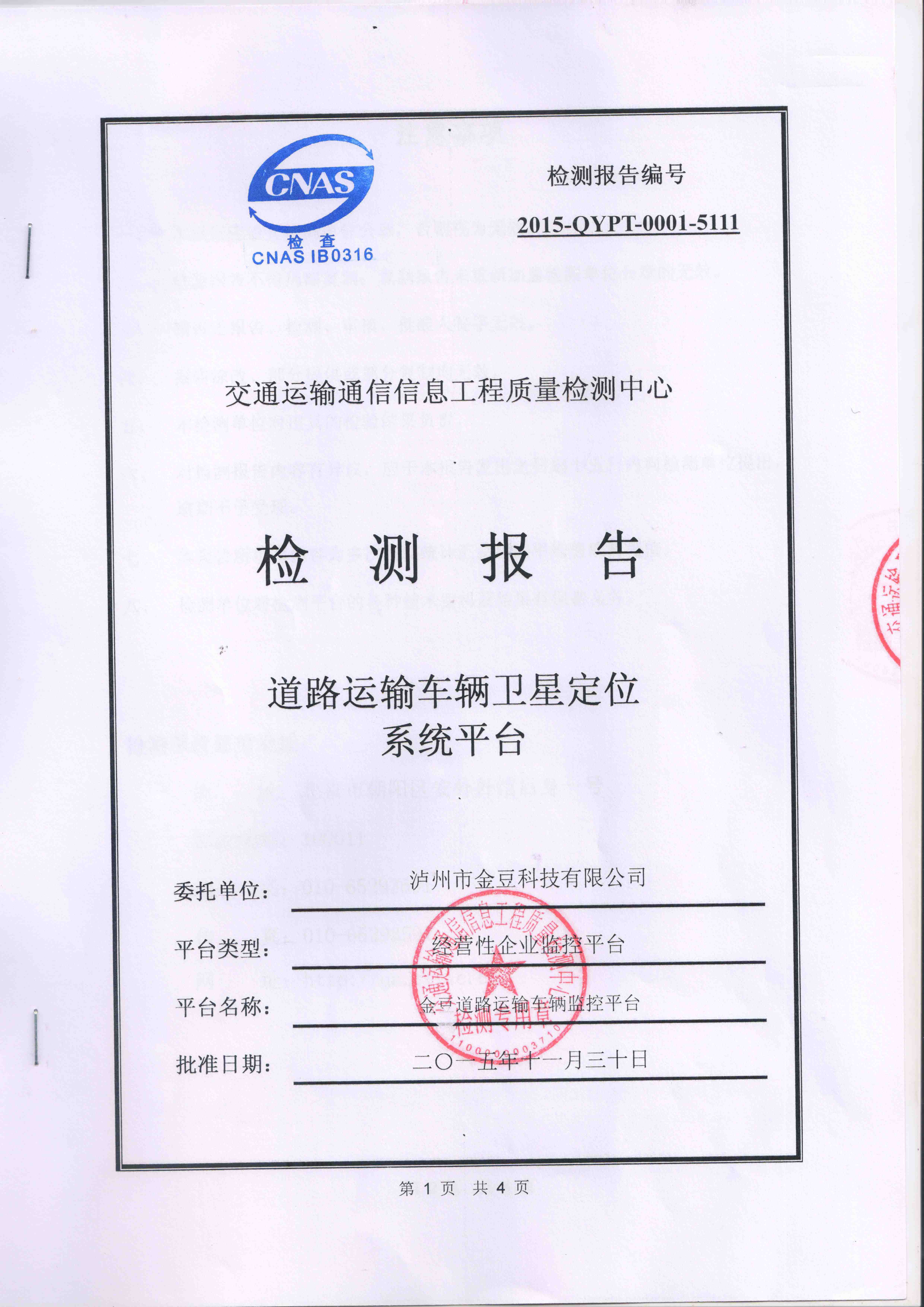 熱烈慶祝金豆科技公司GPS平臺通過中華人民共和國交通部...